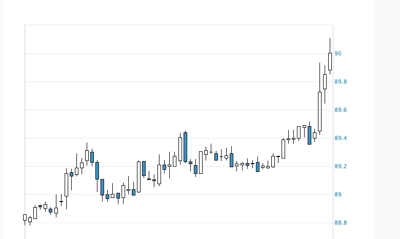 Стоимость евро достигла 90 рублей в 18:35 (мск).