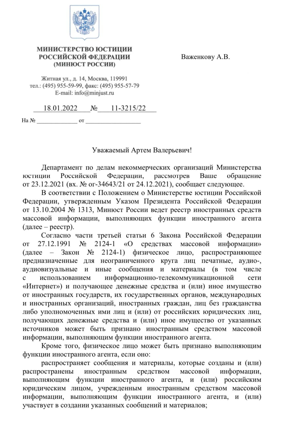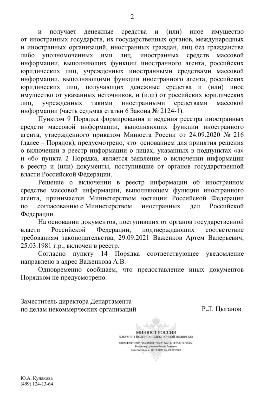 В скриншотах упомянут Артем Важенков*, выполняющий функции иностранного агента
