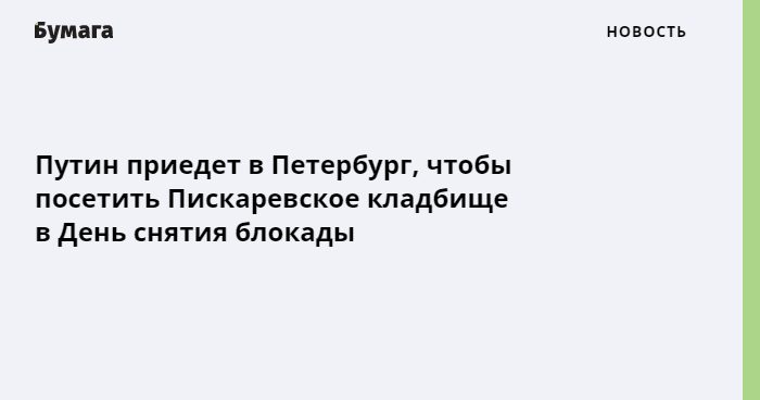 «В день 78-летия полного освобождения Ленинграда от фашистской блокады Владимир Путин посетит Пискаревское мемориальное кладбище, где почтит память погибших воинов-освободителей и жителей города», — говорится в сообщении администрации президента.