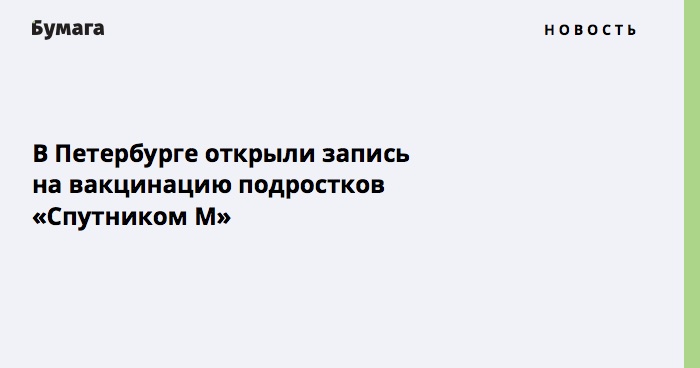 В Петербурге открыли запись на вакцинацию подростков «Спутником М». Об этом сообщили в городском комитете по здравоохранению.