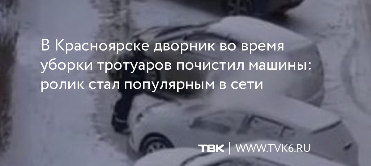 В Красноярске дворник во время уборки тротуаров почистил машины: ролик стал популярным в сети