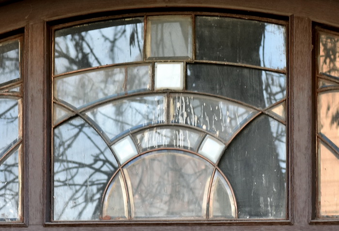 Как сообщалось в проекте «Витражи С.-Петербурга. Инвентаризация 2019–2020», над дверью парадного входа сохранился фацетный витраж с геометрическим рисунком.