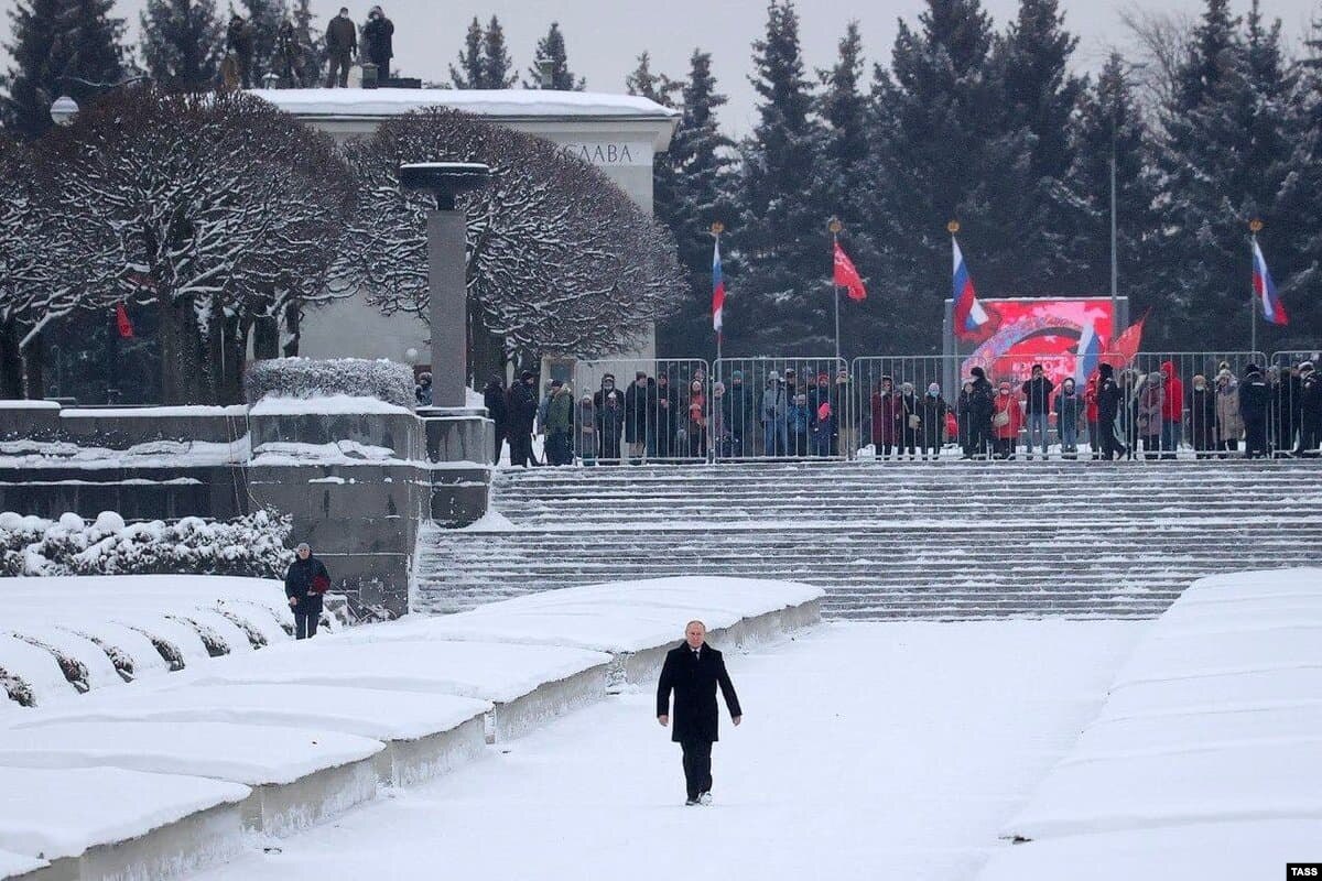 На Пискарёвском кладбище перед визитом Путина обработали сугробы