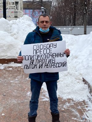 Агаршев держал плакат «Свободу прессе, политзаключенным, я против пыток и репрессий», а Воронцов — «Люди, проснитесь, пора вернуть демократию!»