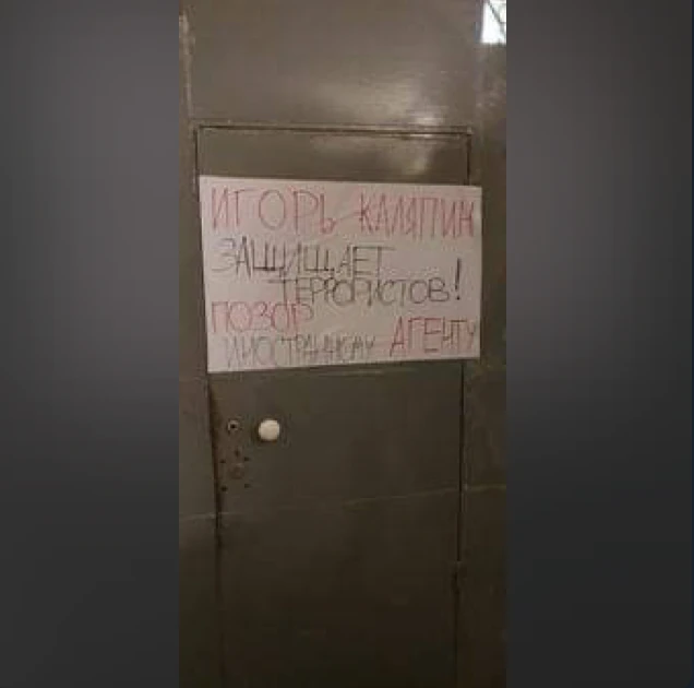 В Нижнем Новгороде неизвестные обклеили плакатами «позор иноагенту» дверь матери правозащитника Игоря Каляпина