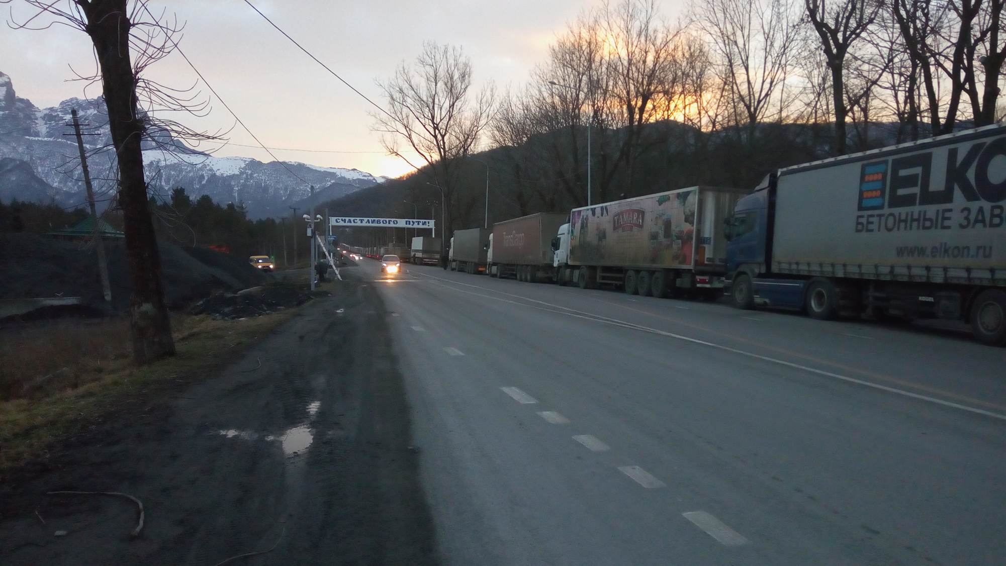 Накануне Военно-Грузинская дорога была закрыта для проезда большегрузных автомобилей в связи с ухудшением погодных условий на территории Грузии до особого распоряжения.