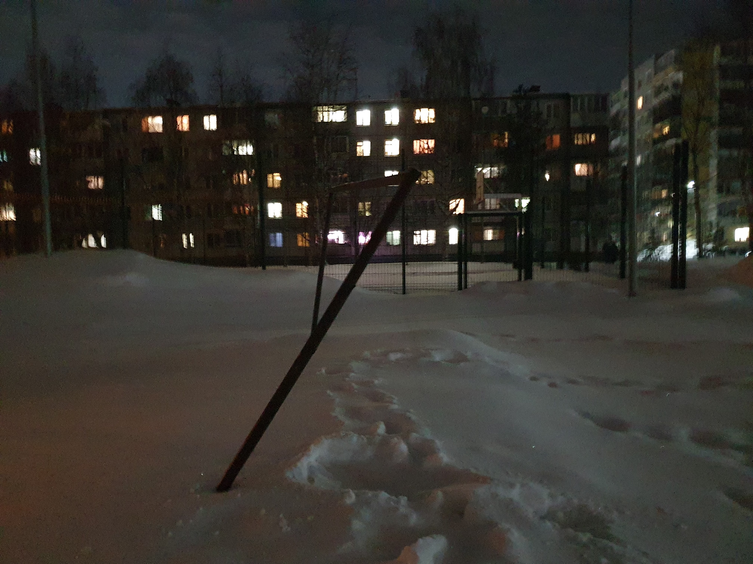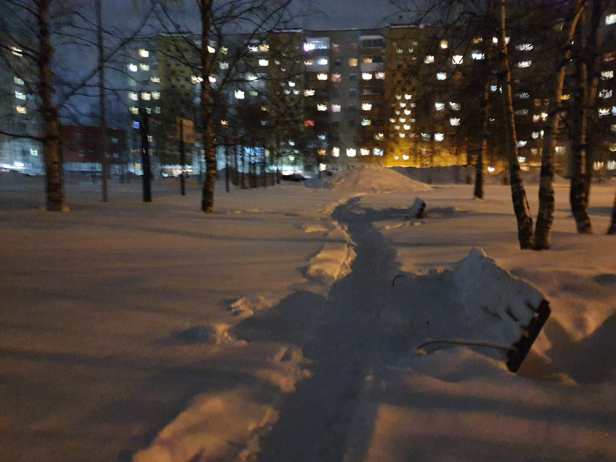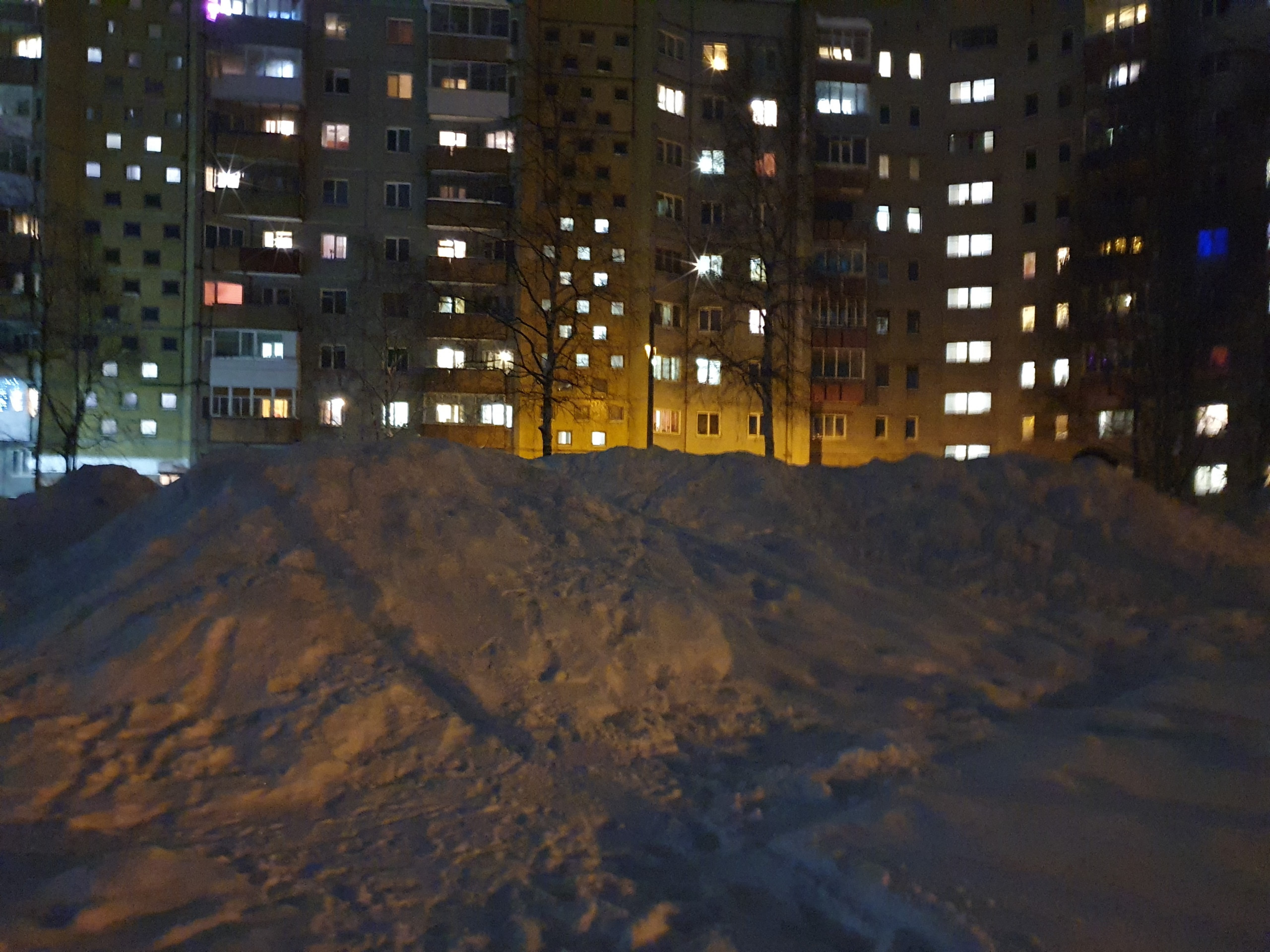 Навалены кучи снега в центре (как они туда попали?), мусорные баки для раздельного сбора стоят за контейнерной площадкой и, конечно же, не используются.