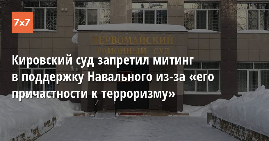 Первомайский районный суд Кирова признал законным отказ мэрии в проведении митинга 31 января. По мнению суда, «мероприятие в поддержку лица, в отношении которого имеются сведения о причастности к экстремистской деятельности или терроризму, недопустимо». Кировские активисты планировали провести митинг у здания мэрии и потребовать освобождения Алексея Навального.