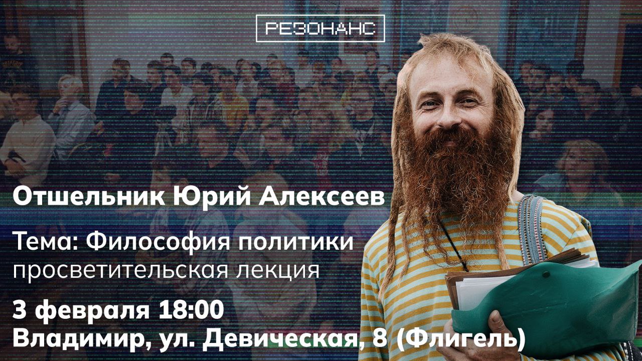 На этой неделе возможность вживую послушать Хоббита-Отшельника появится у всех желающих. В четверг, 3-го февраля, Юрий Алексеев прочитает в областном центре просветительскую лекцию на тему политической философии. Мероприятие состоится в 18:00 в центре современной культуры «Флигель» (Владимир, улица Девическая, дом 8). Организатором выступило региональное издание «Резонанс».