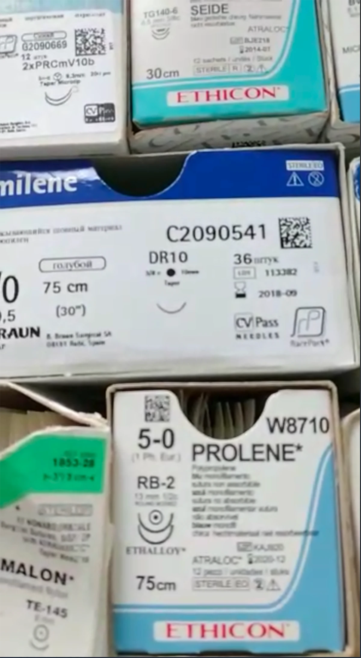 Олеся Губанова последние 8 лет работает операционной медсестрой, пришла в травму из другой больницы. На видео, которые она записала на свой телефон в операционной травматологии, видны коробки с шовным материалом, некоторые из них были просрочены 18 лет назад (запись имеется в редакции).