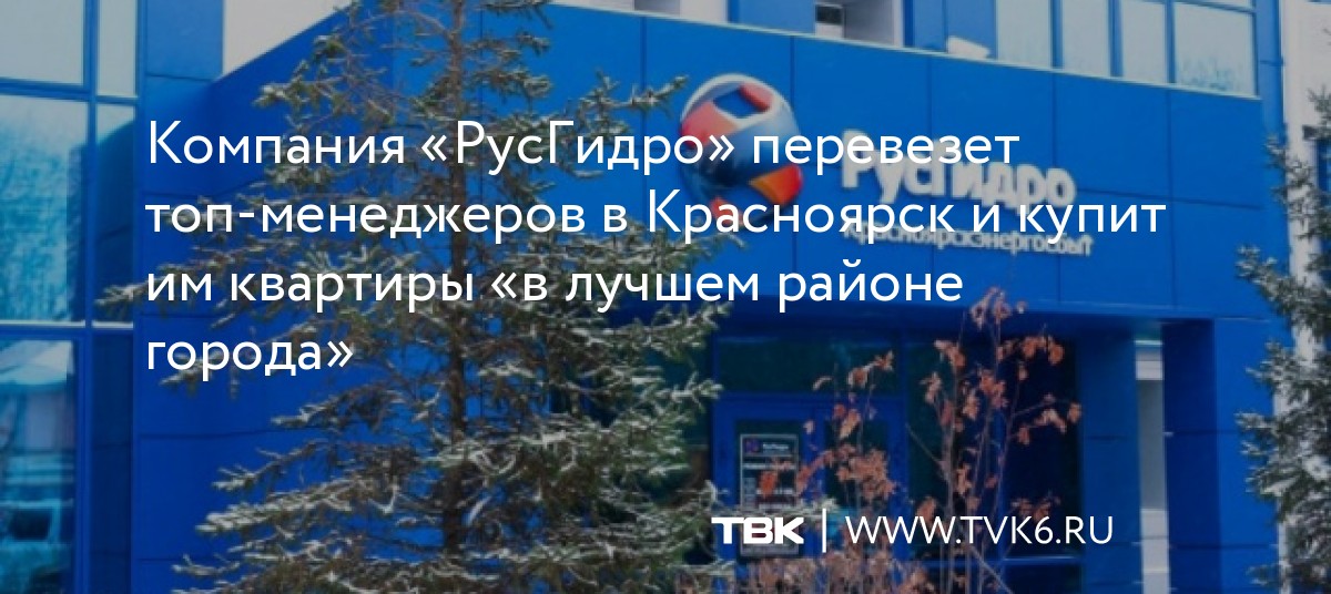Компания «РусГидро» перевезет топ-менеджеров в Красноярск и купит им квартиры «в лучшем районе города»