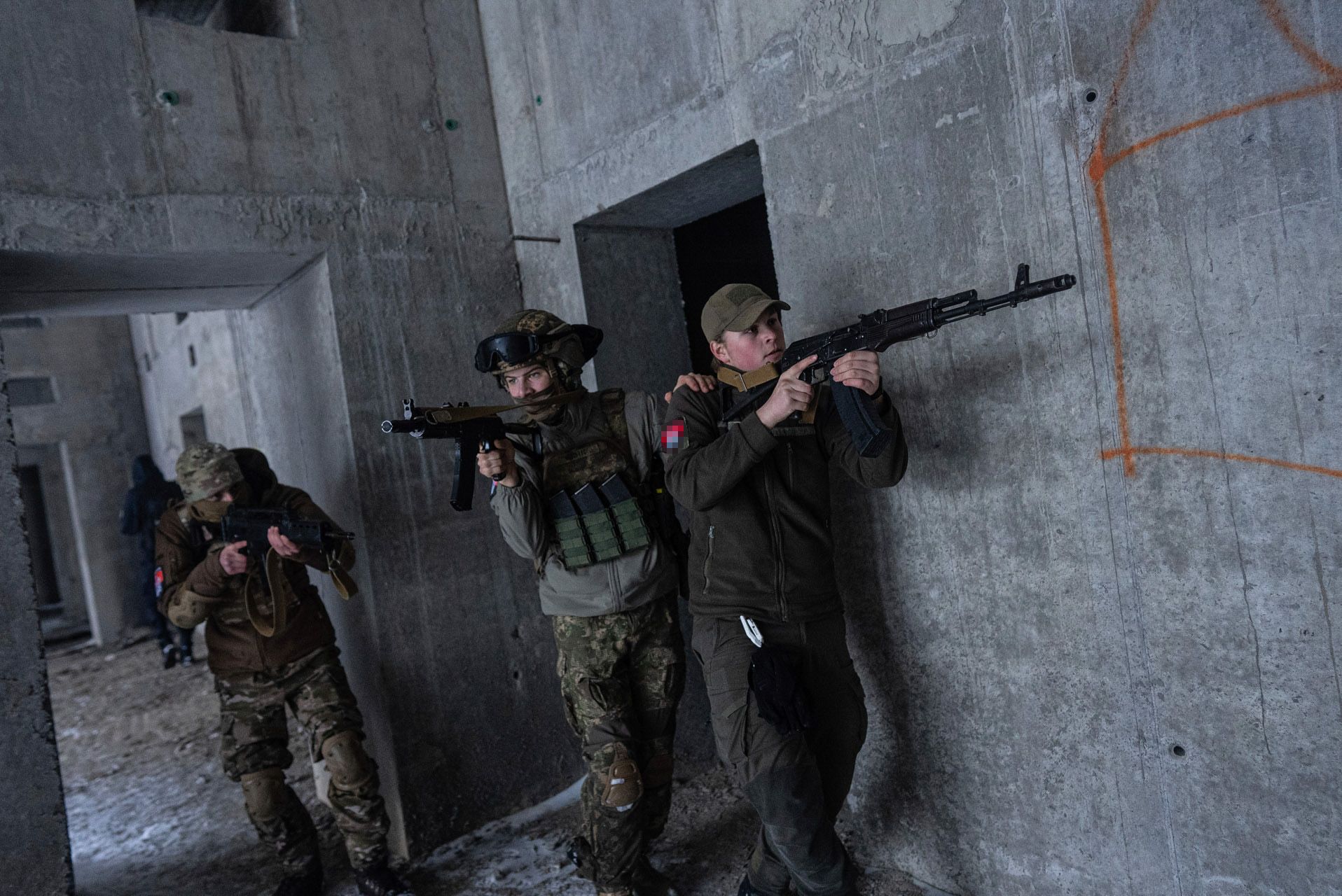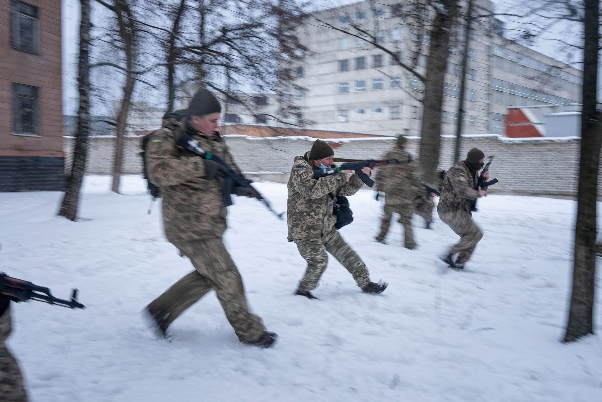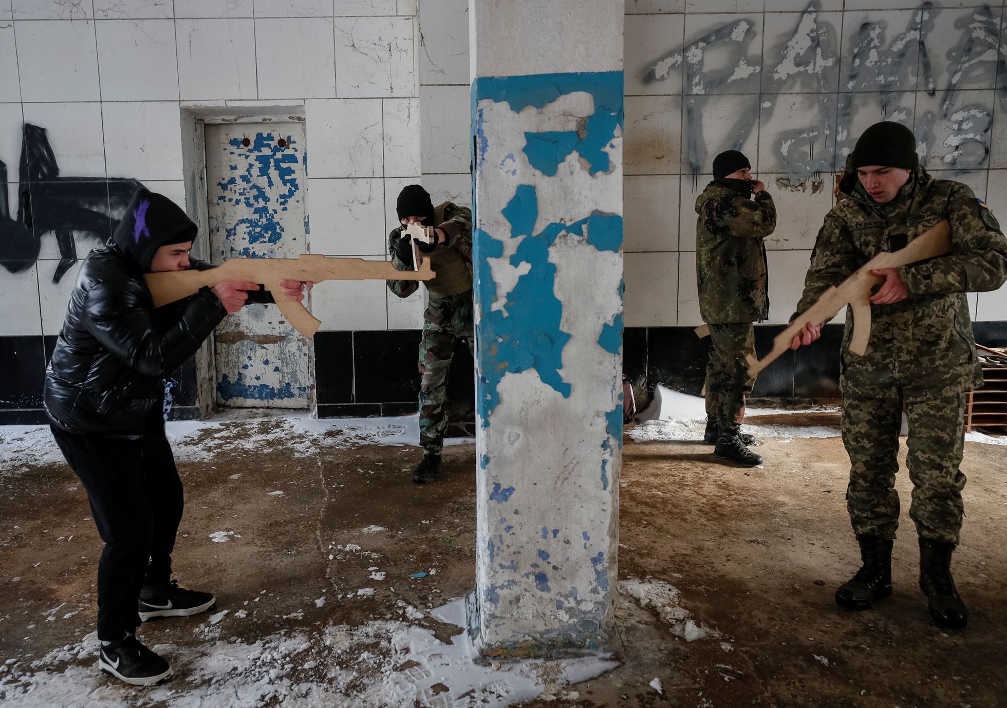 На фоне стягивания российской военной техники и углубления конфликта между Россией и Западом жители Украины начали всерьез готовиться к вторжению. В стране идет набор в Силы территориальной обороны — добровольческие подразделения, появившиеся в Украине еще в 2014-м, а в этом году включенные непосредственно в состав вооруженных сил. Украинские националисты отрабатывают маневры на заброшенных стройках, а в Киеве инструкторы с боевым опытом учат желающих тактике боя на деревянных макетах автомата Калашникова. Добровольцы, готовящиеся к войне, — герои патриотических СМИ Украины и одновременно антигерои российской пропаганды. Для остального мира их мобилизация — видимое свидетельство того, что война России с Украиной вполне реальная перспектива. Вот как все это выглядит.