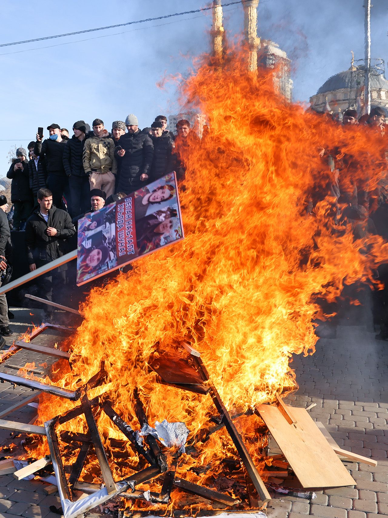 В Грозном прошел митинг, на котором сожгли портреты членов семьи Янгулбаевых