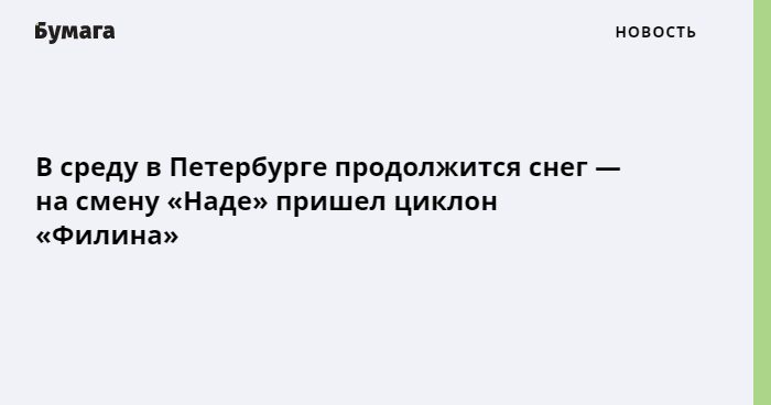 В среду, 2 февраля, в Петербурге местами пройдет небольшой снег. На погоду будет влиять циклон «Филина», рассказал ведущий специалист центра «Фобос» Михаил Леус в фейсбуке.