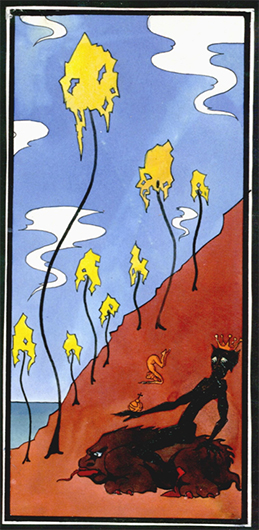 © Предоставлено семьей Е.Н. Рейтлингер Ариадна Арендт (1906–1997). Йог Яшна Пура. 1928. Дерево, темпера В предисловии к комментариям сын Екатерины Николаевны высказывает предположение о причине, побудившей ее к созданию рисунков. Перечисляя виды подработок, среди которых роспись различной мебели и декоративно-прикладных предметов в стиле эпохи Средневековья для состоятельных заказчиков, он пишет: «Маме с ее кипучей энергией этого, конечно, было мало, и она реагировала на окружающую жизнь своими парадоксальными рисунками» [5]. Оставшись в Советской России, Рейтлингер вряд ли имела бы возможность безопасно выплескивать свою «кипучую энергию». То, как она охарактеризовала себя, и то, что написал ее сын Александр Кист, не избавляло ее от приобретенного страха, верно?