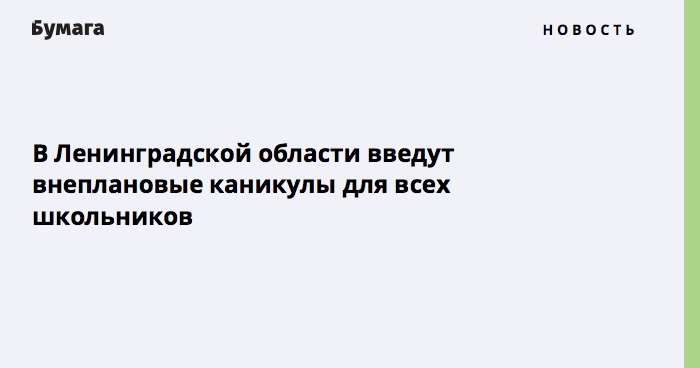 В Ленобласти введут внеплановые каникулы. Об этом сообщили в правительстве региона.