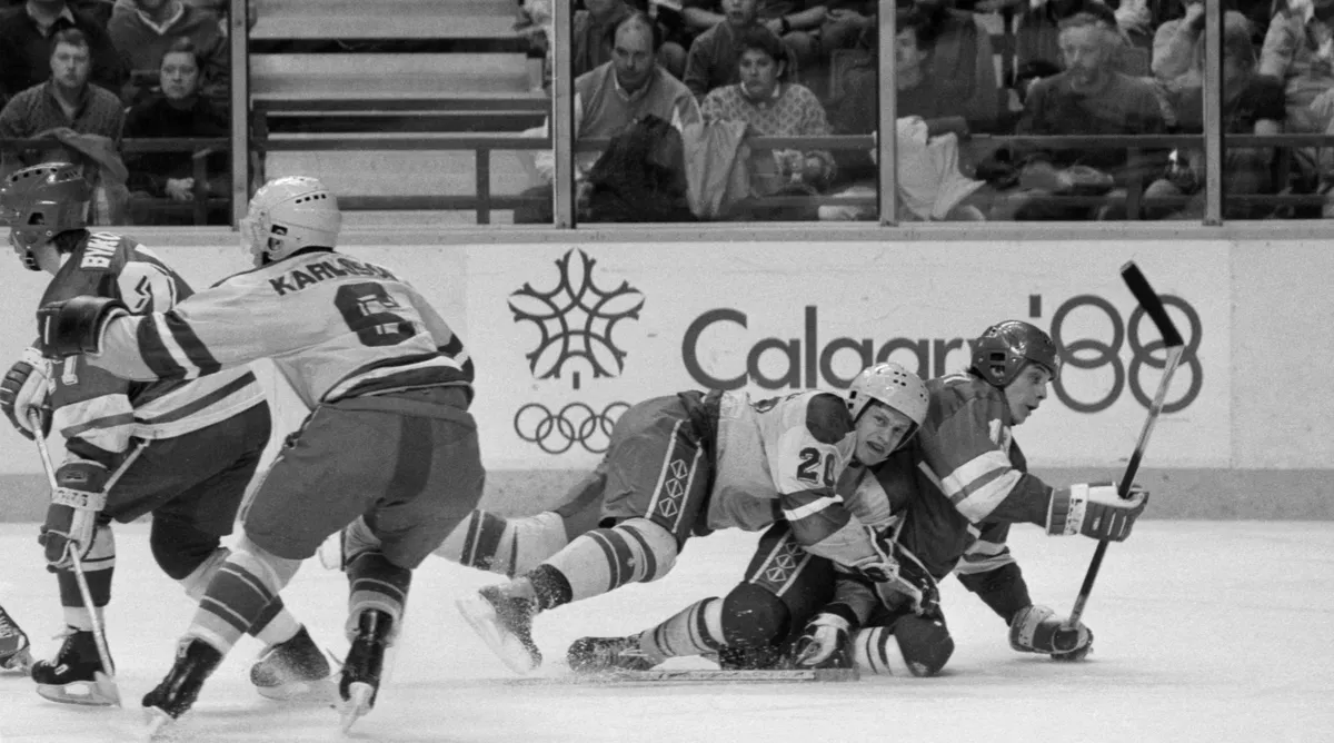Игры на канадской земле прошли с небывалым размахом. Олимпийский стадион расширили до 60 тысяч зрителей, а за матчами хоккейного турнира, который ознаменовался седьмой победой СССР, могли наблюдать по 20 тысяч болельщиков. Примечательно, что советский флаг на открытии должен был нести Вячеслав Фетисов, но Виктор Тихонов запретил ему участвовать в церемонии. И знаменосцем стал фигурист Андрей Букин, которому лишняя нагрузка не помешала в дуэте с Натальей Бестемьяновой победить в танцах на льду. В состязаниях пар сорвали джек-пот Екатерина Гордеева и Сергей Гриньков. А всего виртуозы коньков завоевали пять медалей. Пять медалей (причем золотых) принесли и наши шикарные лыжники и лыжницы. Спустя 24 года в копилке национальной команды оказалась и бронза за лыжное двоеборье (Аллар Леванди). Ну и буквально влетели в историю отечественного бобслея Янис Кипурс и Владимир Козлов, совершившие долгожданный золотой заезд. И еще один важный момент: эта Олимпиада стала последней для сборных СССР и ГДР.