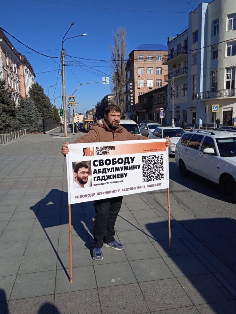 В Махачкале прошел пикет в поддержку арестованного журналиста Абдулмумина Гаджиева
