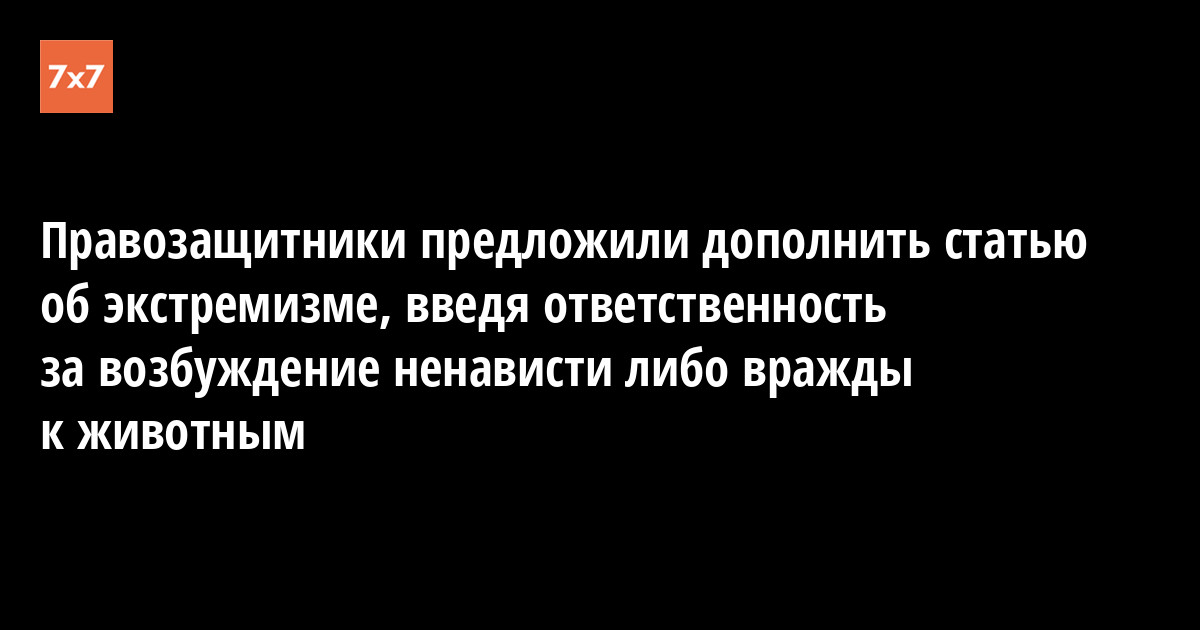 Правозащитники считают необходимым принять как на уровне административного, так и на уровне уголовного законодательства ответственность за возбуждение ненависти к другим видам, животным, дополнив законодательство об экстремизме.
