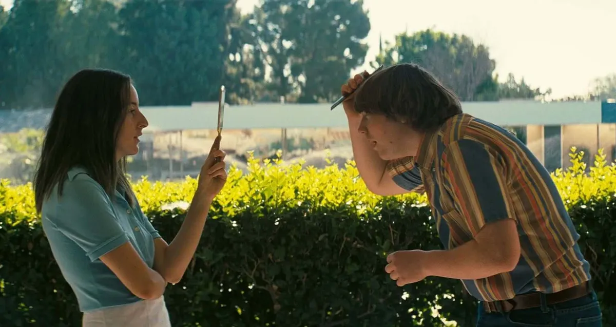 «Лакричная пицца» Пола Томаса Андерсона. Нежный ностальгический ромком о первой любви. Кино честное и уязвимое, как сам подросток, балансирующее между арлекинадой и пасторалью, заряженное спонтанностью, бегущее по осколкам разбившейся о время мечты.