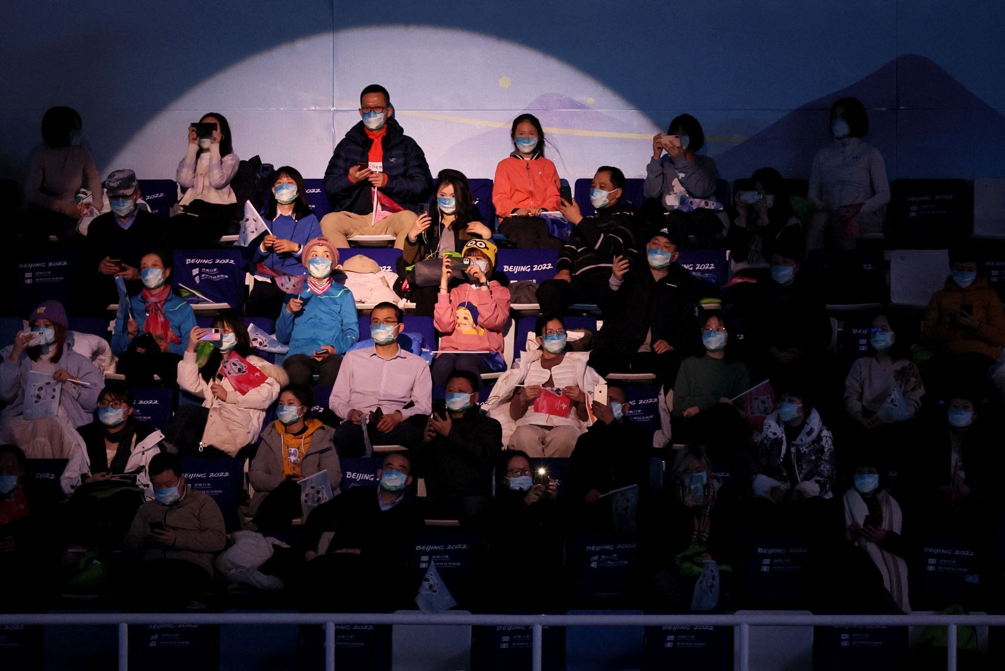 Ограничения коснулись и зрителей. Хотя, в отличие от Игр в Токио, китайские власти решили не закрывать полностью трибуны, в свободной продаже билеты на соревнования так и не появились, их распространяли среди сотрудников госучреждений и в отдельных группах общества. Рассадка на трибунах — через одно или несколько мест; зрители обязаны все время находиться в респираторах FFFP-2; громкие выкрики не приветствуются (да и вряд ли возможны в респираторе). По оценке присутствующих на Играх журналистов, заполняемость спортивных площадок не превышает 15–20%. С обитателями «пузыря» зрители не пересекаются.