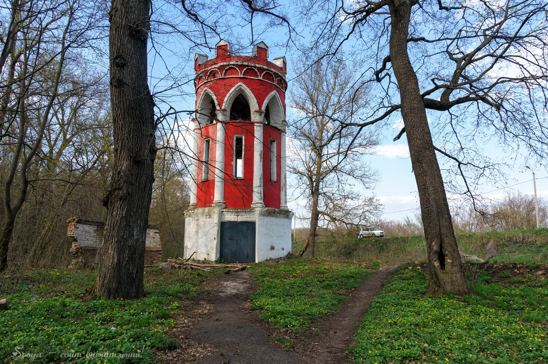 Трехъярусная башня с винтовой лестницей и смотровой площадкой была построена в 1870–1871 годах Владимиром Ивановичем Барятинским на территории имения его брата, князя Виктора Барятинского. Башня отлично гармонировала с ажурной кирпичной стеной, которой была огорожена усадьба.