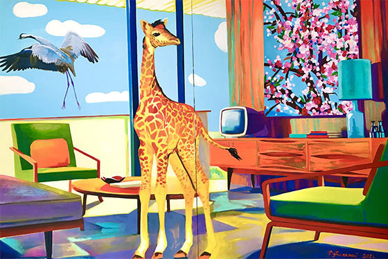 «В живописных работах из проекта "В мире животных" автор конструирует концептуальные соединения равноудалённых друг от друга феноменов. Представители доисторической фауны, интерьеры типовой застройки хрущевского периода, образы и язык поп-арта, соединяясь в рамках произведения, высвечивают точки напряжений между содержаниями и комплексами идей, лежащих за ними», — отмечают организаторы выставки.