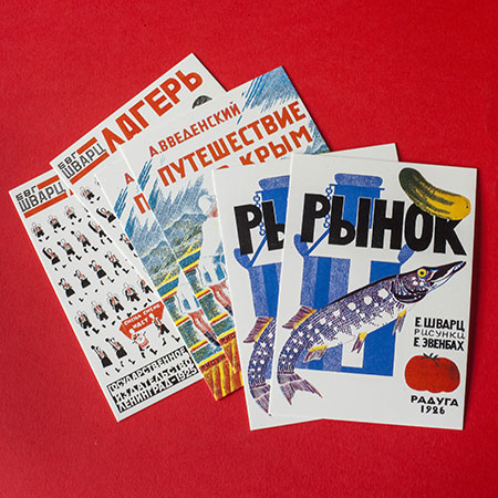 © A+A История «Рынка» мне особенно дорога. Художница Евгения Эвенбах во время творческой командировки в Новгород делала наброски на рынке и привезла их в редакцию «Радуги», где получила комментарий: «Случай редкий. Принесены готовые рисунки к несуществующему тексту… Писателя мы Вам найдем». Был найден начинающий писатель Евгений Шварц. В процессе работы над книгой Эвенбах добавила новых сюжетов: например, щуку с обложки она купила уже на Андреевском рынке в Ленинграде.