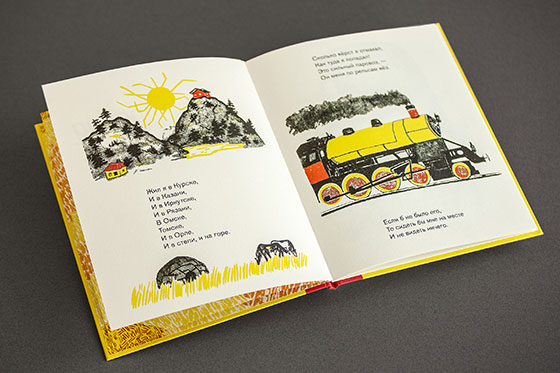 Например, «Поезд» был придуман вместе Евгением Шварцем и Верой Ермолаевой. Он начинается словами «Здесь восемь картинок». И текст рассказывает, что восемь одноклассников разъезжаются со своими семьями по Советскому Союзу кто куда. Потом восемь картинок рассказывают, как восемь железнодорожных составов увозят мальчиков. Потом текст — как они шлют открытки. Это единый замысел, в котором и любовь Веры Ивановны к счету (здесь он в тексте, а в ее «Собачках» — и в картинке), и театральность в духе Евгения Львовича.