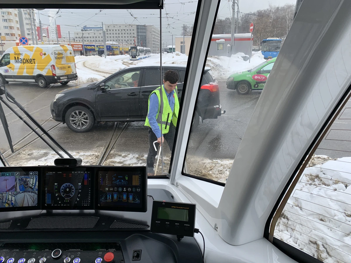 Но работу Дмитрий все равно любит, с упоением говорит о новом вагоне: «Смотрите, он может на одной батарейке ехать без подключения к сети. А вот еще камеры у него выходят на все стороны, могу видеть все участки дороги вокруг трамвая. А еще вот, смотрите, какая стеклоочистительная система…» Таймер, кстати, тоже есть — за временем водители следят. Поездка от «Строгино» до «Щукинской», к слову, заняла всего 15 минут.