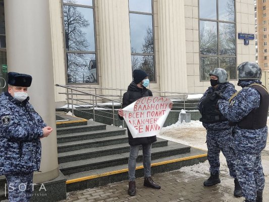 В Москве у Мосгорсуда задержали мужчину, который вышел в одиночный пикет в поддержку Алексея Навального. Об этом сообщает SOTA.