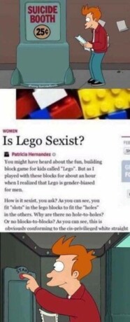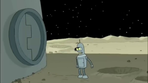 Не самый очевидный мем по «Футураме» — шаблон про будку самоубийств, возле которой Фрай познакомился с Бендером. В самой первой серии главный герой просыпается в криокамере после тысячелетнего сна и пытается позвонить родственникам, но путает телефонную будку с будкой самоубийств. В очередь на суицид как раз стоял робот-сгибатель.