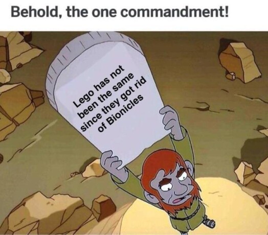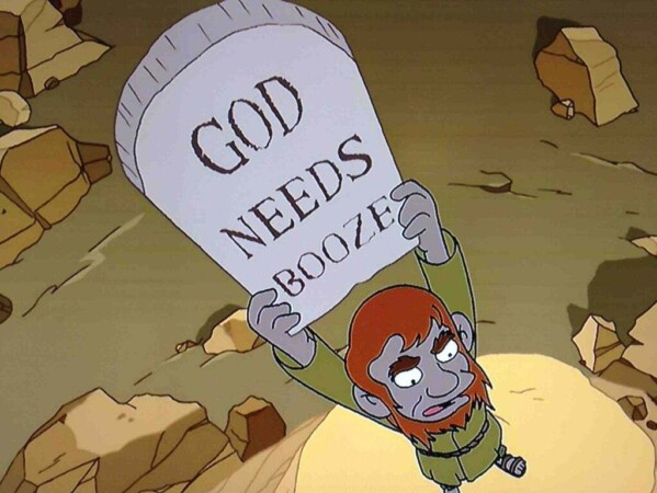 «Футурама» породила и формат с табличкой, где пользователи пишут свои противоречивые мнения, с которыми предлагают согласиться. В двадцатом эпизоде третьего сезона, «Равные богу», Бендер оказывается один в космосе, а в какой-то момент на его теле заводится раса человекоподобных существ и принимает его за бога. Понимая это, робот передаёт своим последователям каменную скрижаль, на которой написана заповедь: «Богу нужно бухло». Проповедник, который общался с Бендером, произносит: «Перед вами единственная заповедь!»