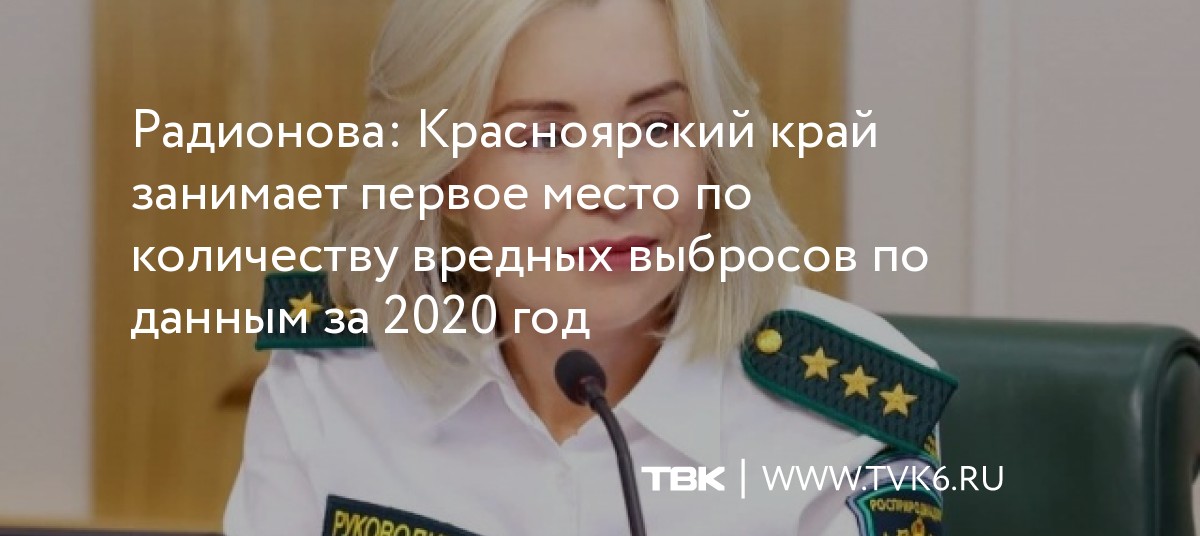 Радионова: Красноярский край занимает первое место по количеству вредных выбросов по данным за 2020 год