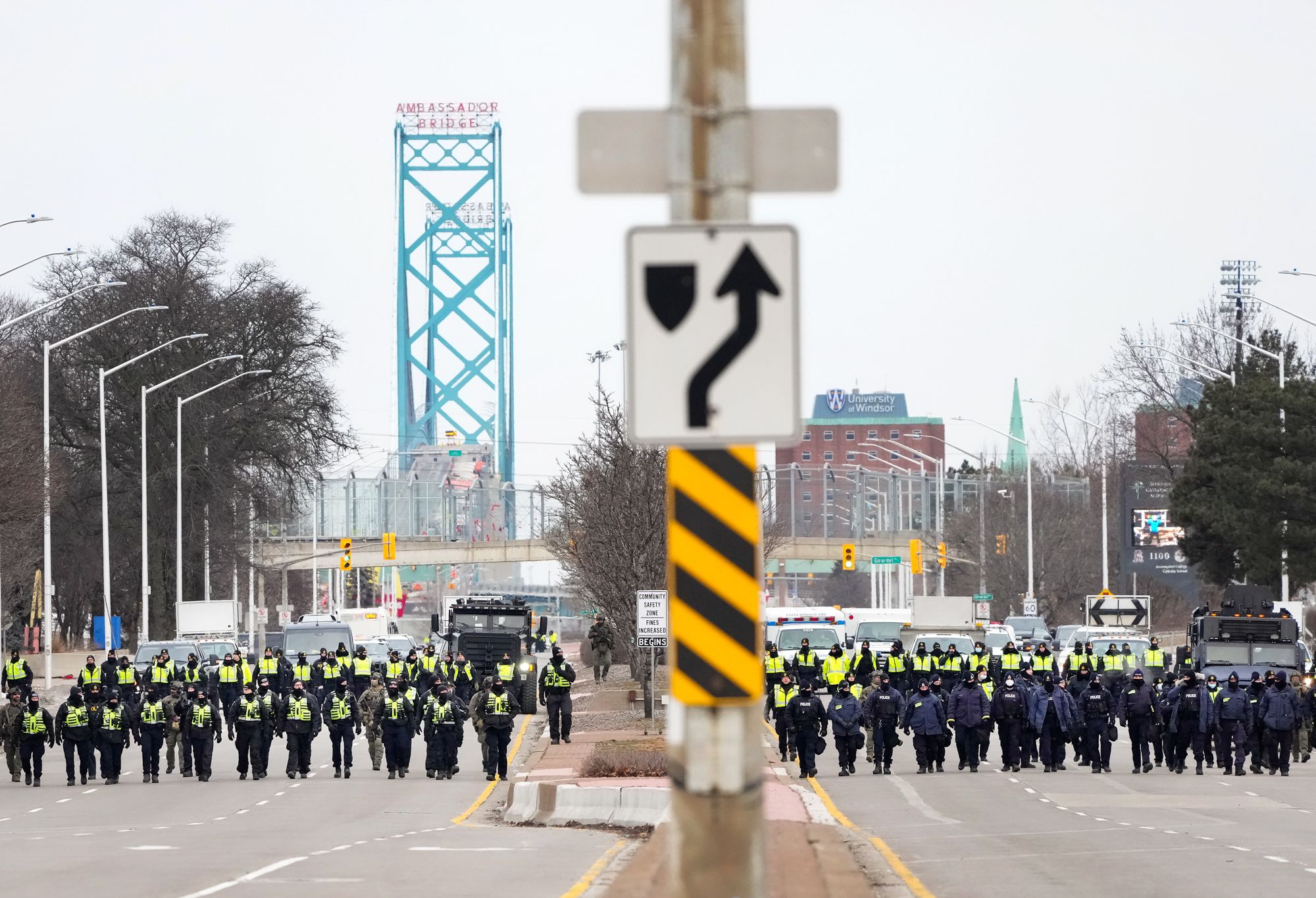 Несмотря на усилия полиции, протестующие заблокировали улицы и главный мост на границе с США. Фотографии