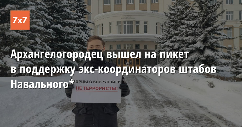 Архангельский активист Андрей Кичев вышел на одиночный пикет с плакатом «Борцы с коррупцией — не террористы». Он решил напомнить гражданам о преследованиях гражданских активистов и политзаключенных, экс-координаторов штабов Алексея Навального*. Об этом «7х7» сообщил Кичев.