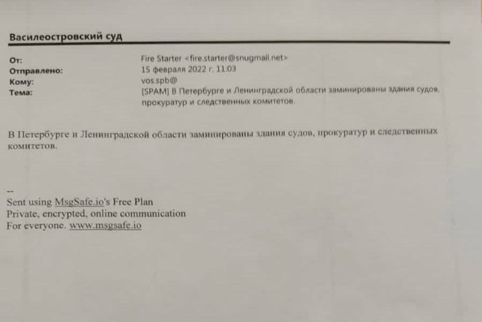 В Петербурге городские учреждения утром 15 февраля массово получают сообщения о минировании. Письма пришли в несколько судов, сообщили в объединенной пресс-службе. Из-за сообщений отменили занятия в некоторых школах, рассказали «Бумаге» в пресс-службе администрации Калининского района.