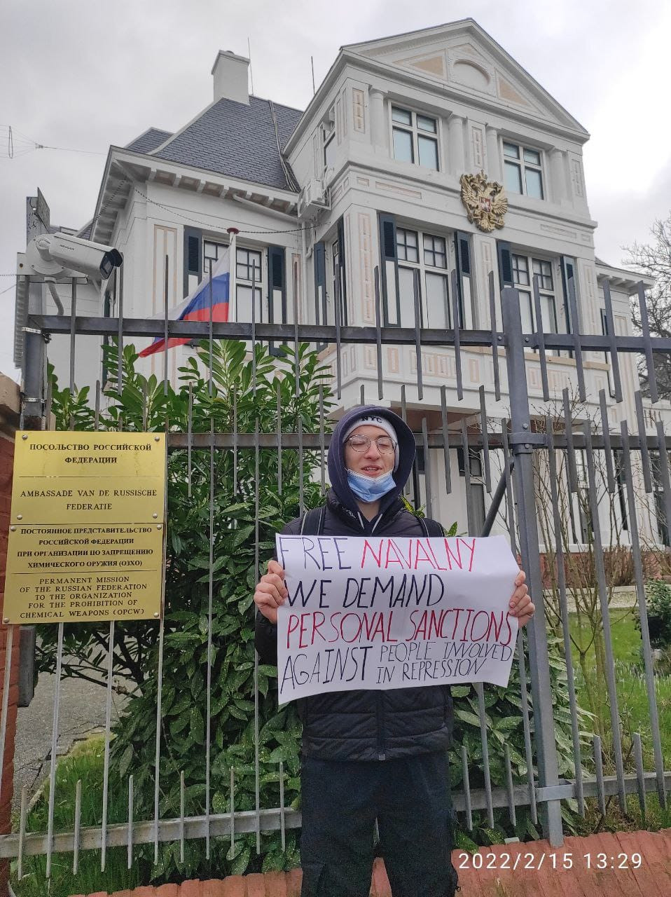 У российского посольства в Нидерландах проходят пикеты в поддержку Навального