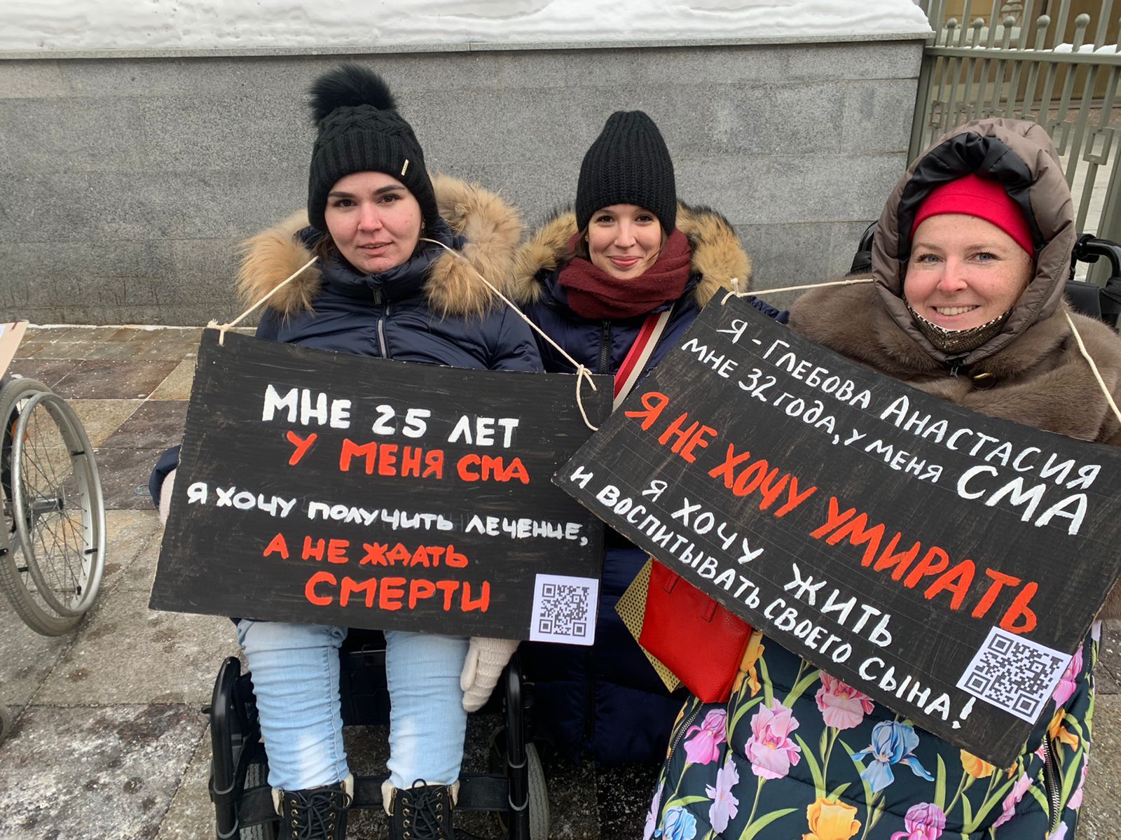 Борьбу за положенную законом терапию ведут и больные спинальной мышечной атрофией (СМА). В конце января они провели массовый пикет у здания Совета Федерации в Москве. На акцию больные СМА приехали в инвалидных колясках, с сопровождающими – без посторонней помощи таким больным справиться невозможно. Они потребовали внести СМА в перечень высокозатратных нозологий. Это позволит получать дорогостоящее лечение за счёт федерального бюджета. Сейчас взрослых пациентов лечат за счет бюджетов регионов. И местные чиновники в большинстве случаев отказывают больным в закупке препаратов из-за их высокой стоимости – лечение одного человека стоит десятки миллионов рублей в год.
