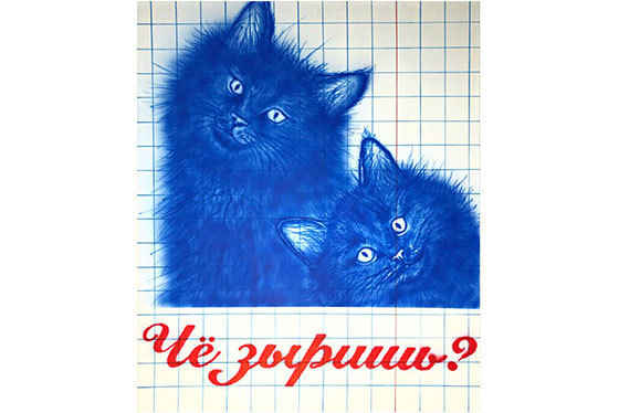 «Работы, представленные на выставке, отсылают к рисункам в школьных тетрадках и исследуют детское мироощущение, — говорит Сергей Хеато. — Что может заставить 13-летнего подростка подписать волка своим именем? Кому адресован вопрос про пивко под котёнком с грустными глазами? Картины провоцируют зрителя вспомнить себя маленьким скучающим школьником и сравнить свое самоощущение тогда и сейчас, задуматься над тем, что было для тебя важно и рассмеяться или смутиться. Иронизируя над маленьким Сережей, взрослый Хеато удивляется, как много их объединяет».