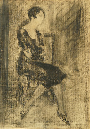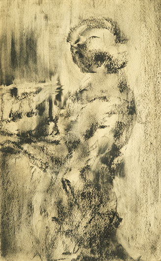 © Собрание семьи Ласкиных В. Калужнин. Фигура в интерьере. 1930-е. Бумага, уголь «Всеблагой» Серов