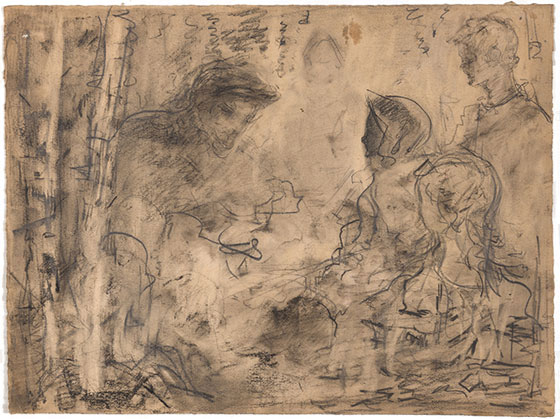 © Собрание М. Анкудинова В. Калужнин. Ленин и крестьянские дети. Эскиз к картине. Бумага, уголь, соус Еще письма