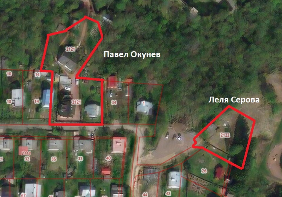 Буквально в сотне метров, через два дома, стоит особняк, в котором поселилась Леля Степановна Серова — мать главы Фрунзенского района Петербурга Константина Серова. Её участок поскромнее — всего 12 соток. Но что примечательно, он был образован из двух более мелких участков, приобретённых в октябре 2018 года у… Марины Павловны Окуневой, дочери бывшего и нынешнего председателей СНТ «Монолит». Один из этих участков Марина Окунева получила от правления «Монолита» буквально за три месяца до его дальнейшей продажи Леле Серовой.