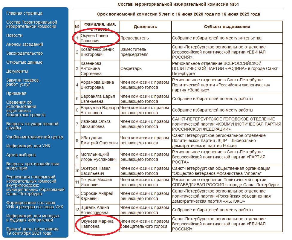 Павел Окунев, как и его дочь когда-то, до 2020 года тоже занимал должность советника Константина Серова, которого к тому моменту уже перебросили на Фрунзенский район. А два года назад наш бывший председатель садоводства, следуя семейной традиции, подался и в организаторы выборов, войдя в состав теризбиркома № 51 в Невском районе города. Опыта работы в избирательной системе у Павла Окунева не было никакого, но он сразу стал председателем комиссии, заняв тем самым государственную должность Петербурга.