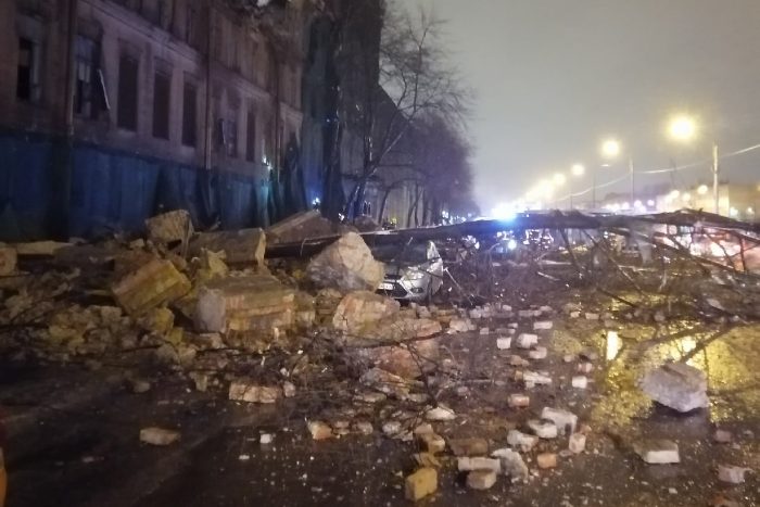 Частичное обрушение произошло в доме № 136 по набережной Обводного канала. Обрушился фасад на площади 150 квадратных метров. Фрагменты здания рухнули на дерево, дерево упало на девушку. Спасатели уже извлекли ее из-под завала и передали бригаде скорой помощи. Кроме того, пострадало два припаркованных автомобиля.