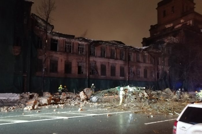 Обновление от 14:00 18 февраля. Из-за травмирования женщины во время обрушения части «Красного треугольника» Следственный комитет Петербурга начал доследственную проверку. По данным ведомства, кирпичная кладка обвалилась с третьего этажа одного из корпусов. В результате петербурженка 1969 года рождения получила травмы, ее госпитализировали.