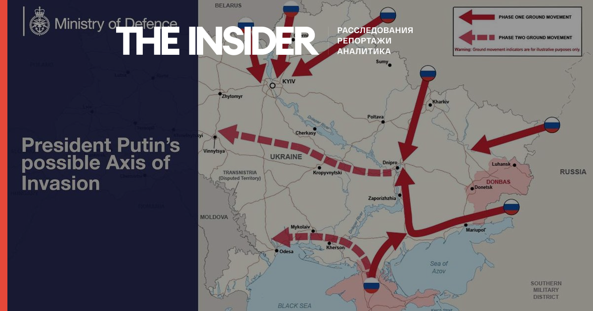 «Представленный британским министерством обороны план России по вторжению в Украину в целом соответствует известным нам районам сосредоточения российских войск (например направление из Курской области на Киев), — сообщили The Insider аналитики расследовательской группы Conflict Intelligence Team (CIT). — Но мы не беремся прогнозировать дальнейшие направления наступления до Днепра и Запорожья. в то же время, по прошествии двух дней после заявлений Шойгу об окончании учений мы пока не видим признаков того, что российские войска уходят от границы с Украиной».