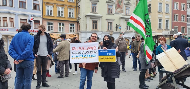 Как рассказала Кавказ.Реалии чеченская активистка Роза Дунаева, присутствовавшая на акции в австрийском городе Граце, митинг назывался Solidarität mit der Ukraine (в пер. с нем. "Солидарность с Украиной". - Прим.ред.). Его участники призвали европейских политиков проявить солидарность с Киевом и оказать поддержку Украине, принять меры в отношении Путина и его окружения.