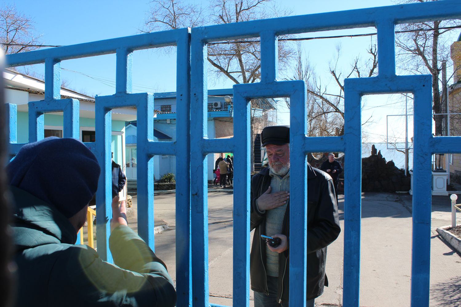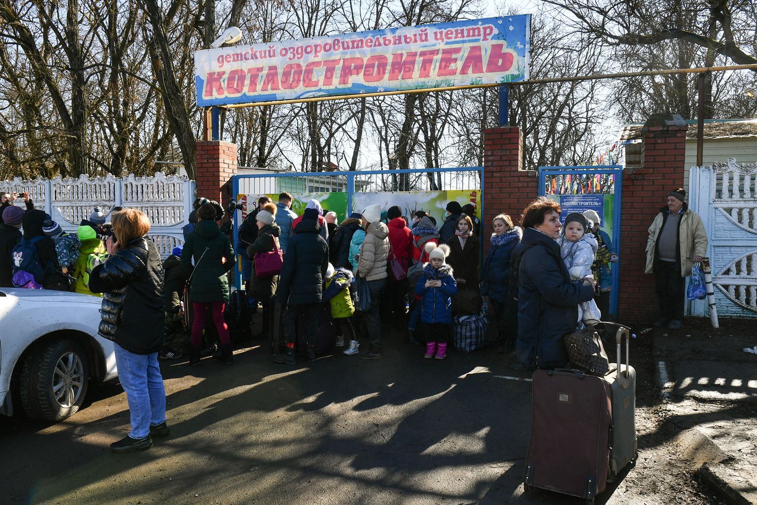 Ее привезли на хутор Красный десант в 15 километрах от Таганрога. Сюда к утру 19 февраля съехались десятки автобусов с беженцами из ДНР. Размещали эвакуированных в детском лагере «Котлостроитель». Этот пункт рассчитан на 750 человек, но уже к полудню примерно полторы сотни беженцев остались за забором — им не хватило мест.