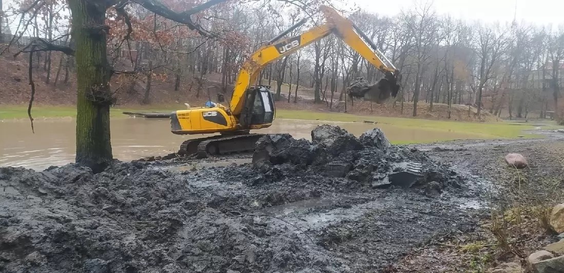 Подрядчик должен будет укрепить берега водоемов с использованием габионных конструкций, посадить газон и установить подпорные стенки. Сейчас из прудов только начали спускать воду.
